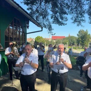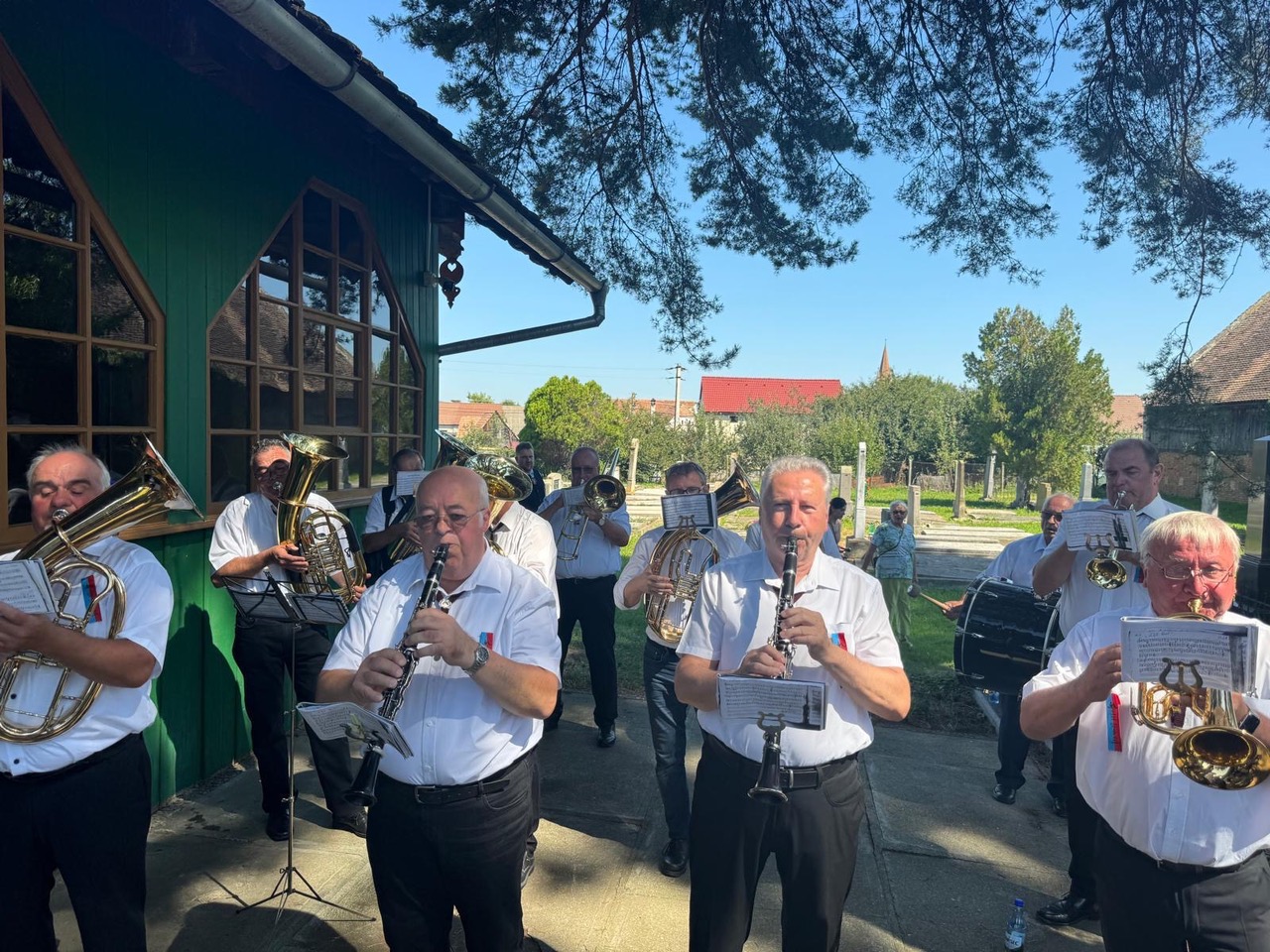 Von Mittwoch bis Freitag trafen sich die bis zu 14 Musikanten jeweils von 19:00 bis 23:00 Uhr zu intensiven Proben. Ergänzt wurden wir durch Hermann Gross am Bariton und gesanglich durch den Sohn von Elst Gust. Für die Verpflegung sorgten in bewährter Weise Hermann Grennerth und seine Ehefrau, die täglich frische Lebensmittel vom Markt besorgten. Unterstützt wurden sie dabei von weiteren Ehefrauen der Musikanten. Die Getränkeversorgung wurde unter anderem durch Weinspenden von Herrn Stix Mathias, Altbürgermeister Ioan Seuchea, sowie durch eine Spende von 5 Litern Wein von Andreas Wagner anlässlich seines Geburtstages am 8. August sichergestellt. Am selben Tag wurde auch unserem Kameraden Hans Liebhardt mit einem musikalischen Ständchen zum Geburtstag gratuliert.